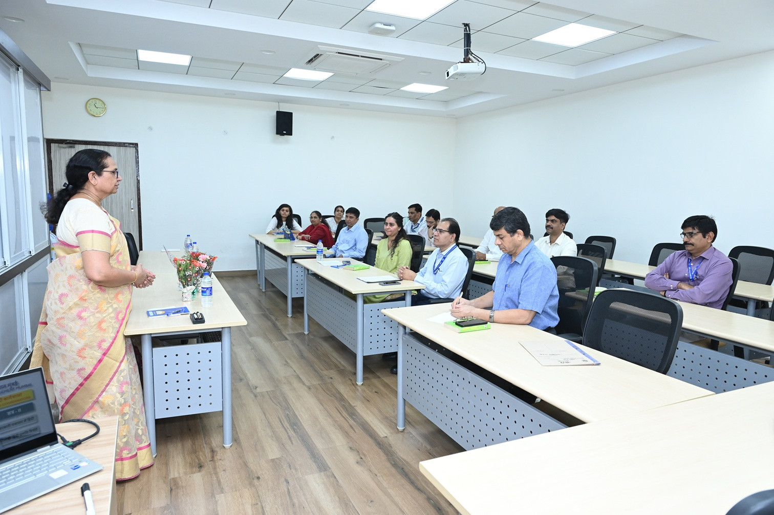 A one-day Hindi Workshop was conducted in IIM Mumbai on 16th February 2026. Thirteen Officers/Employees of the Institute participated in it. Dr. Sunita Yadav, Ex. Deputy Director (Implementation), Western Region Implementation Office, Ministry of Home Affairs, Govt. of India, delivered a lecture on “Official Language Implementation: Problems and remedies”. Also, Shri H.M. Krishnatrey, Ex. Hindi Pradhayapak, CHTS, Ministry of Home Affairs, Govt. of India, delivered a lecture on “Use of Hindi in Official Correspondence”. Likewise, Shri Md. Aftab Alam, Assistant Administrative Officer Grade–1 (Hindi Language), IIM Mumbai, delivered a lecture on “How to fill out the Quarterly Hindi Progress Report?”. On this occasion, Lt. Cdr. (Mrs.) Manjit Kaur (Senior Executive Officer- Admin & HR) welcomed the guest speaker by presenting him with a bouquet.