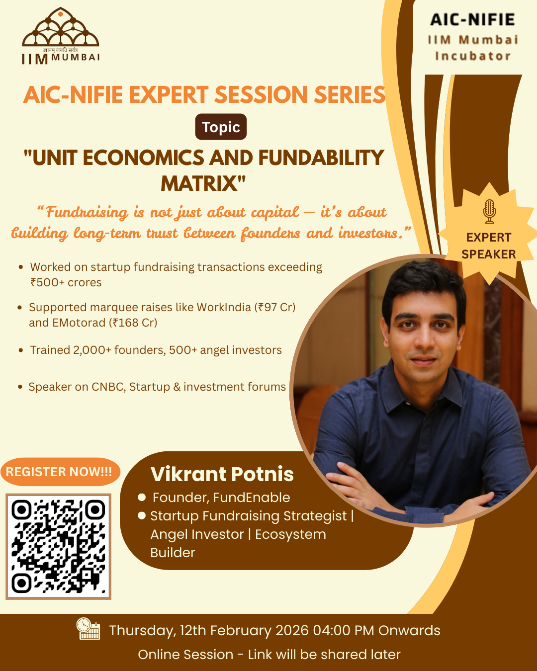 AIC–NIFIE, IIM Mumbai Incubator successfully conducted an engaging Expert Lecture Session on Fundraising Insights on Thursday, 12th February 2026, from 4:00 PM onwards in online mode.